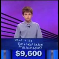 Yeah, the clues are a little easier for kid’s week, but Skyler was the only one who correctly responded “Emancipation Proclamation.” (You can watch the Final Jeopardy reveals here.)